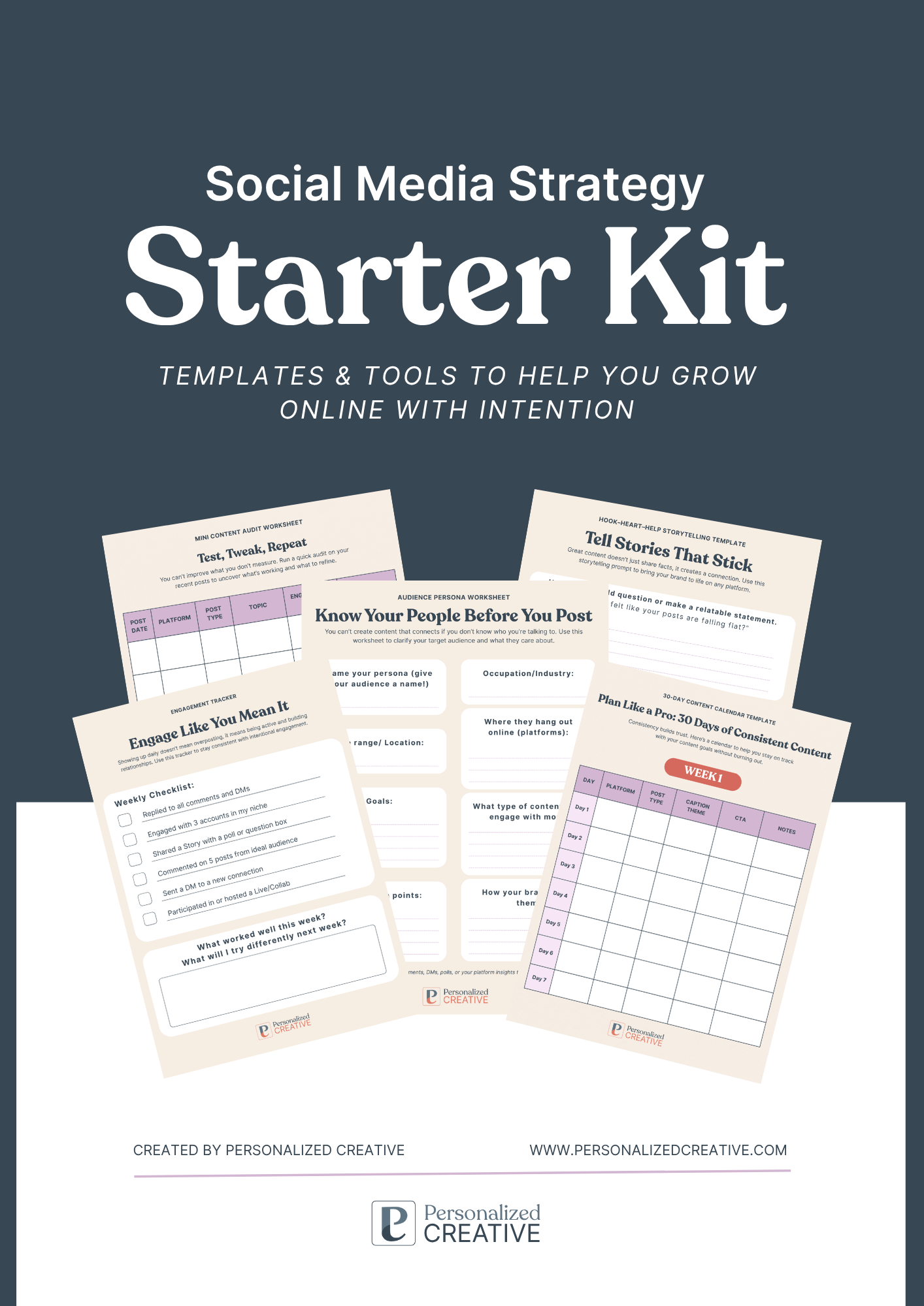 Download our free Social Media Strategy Starter Kit, complete with templates, trackers, and planning tools to help you grow online with ease.